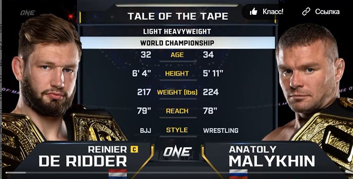 Анатолий Малыхин - Ренье де Риддер на турнире ONE Championship